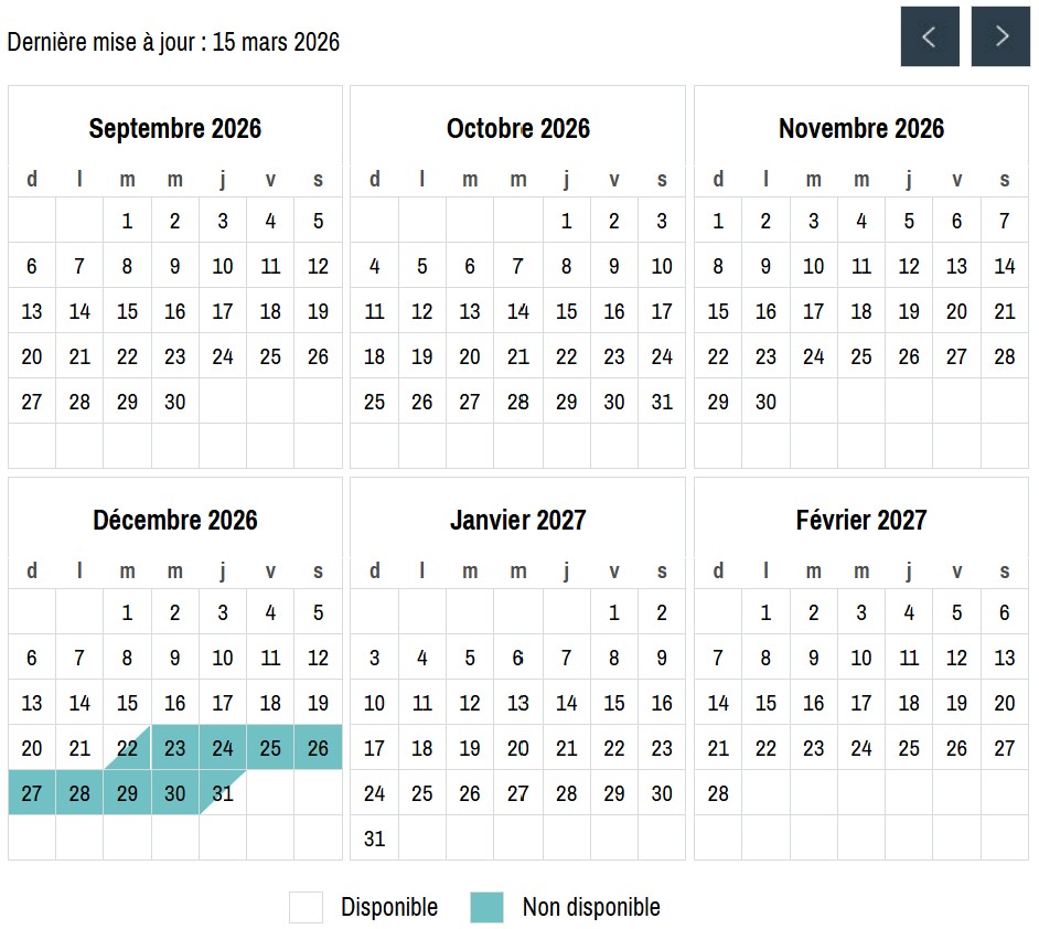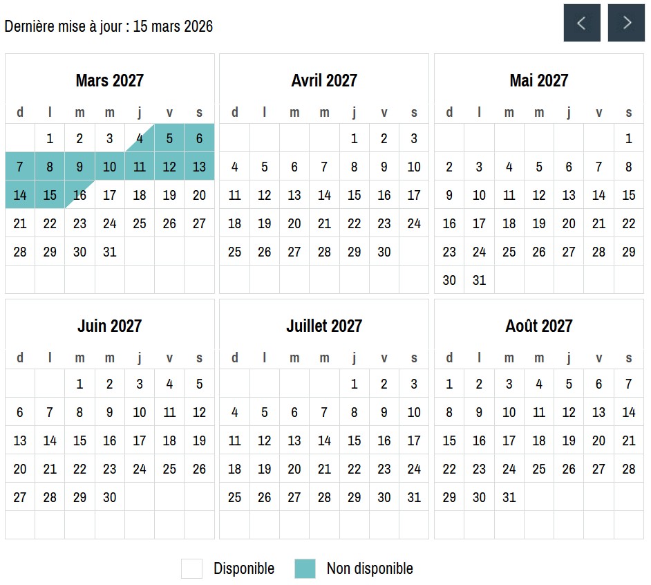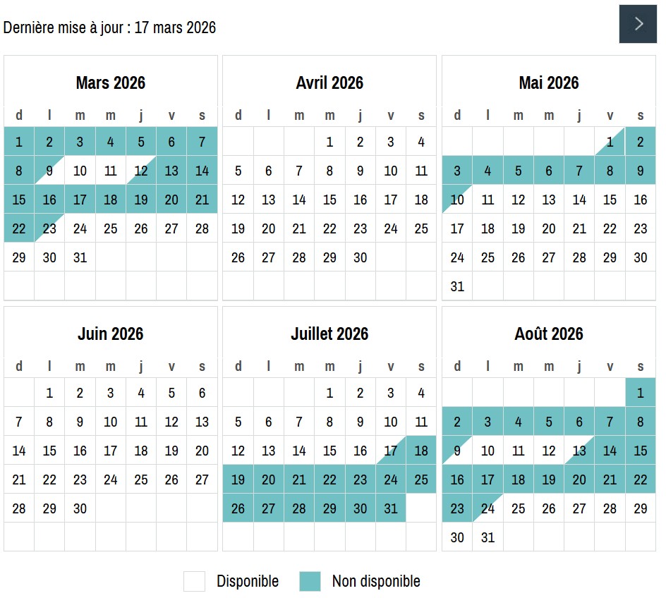 Avant d’envoyer votre demande de réservation, merci de consulter notre calendrier.