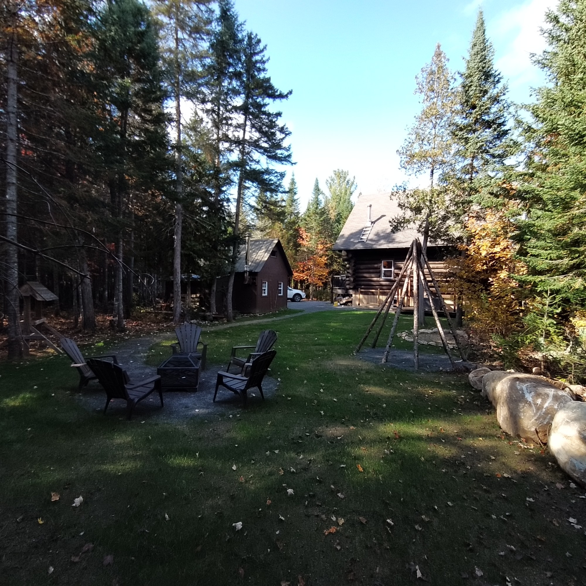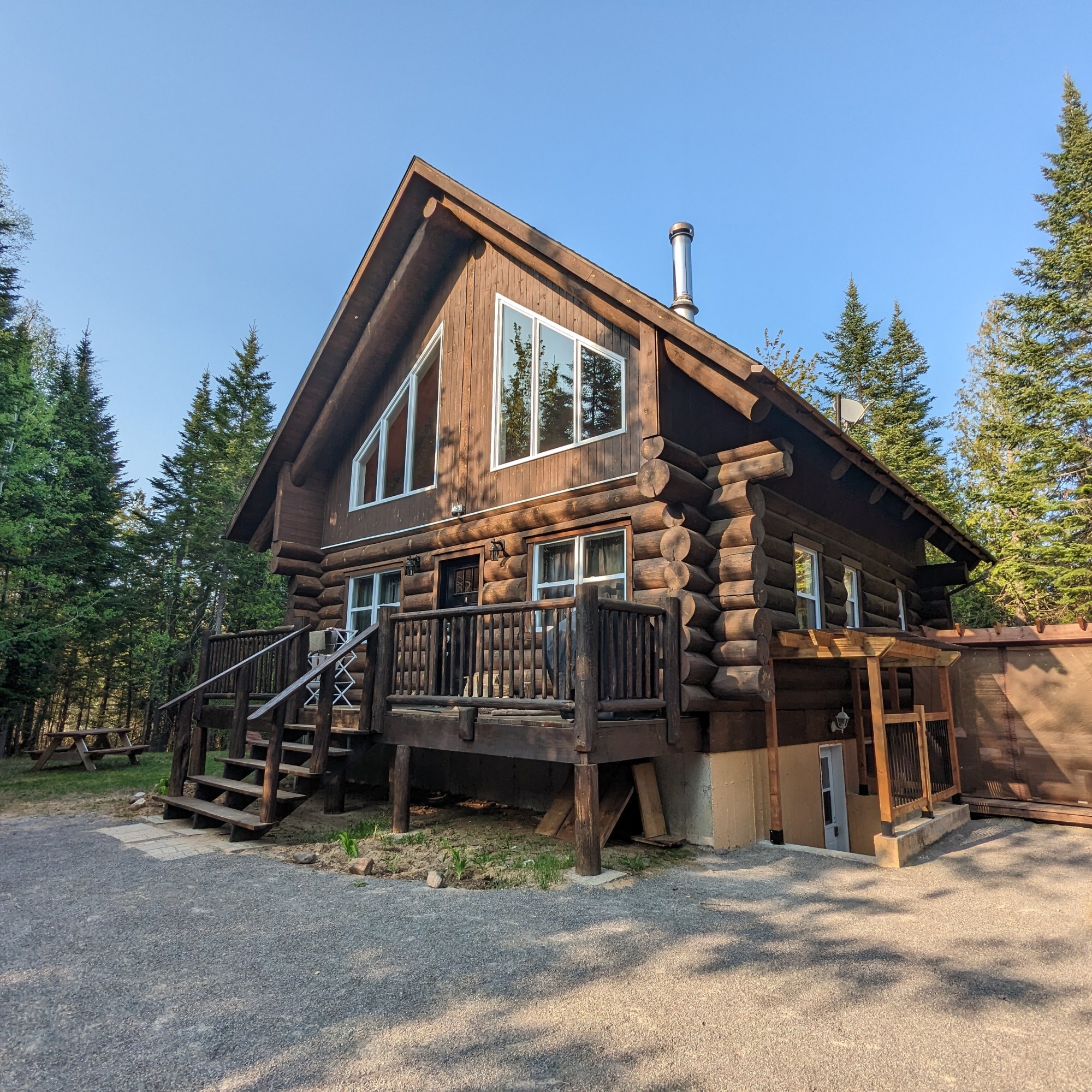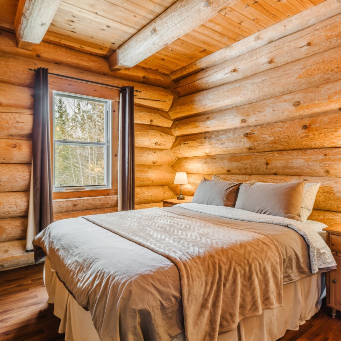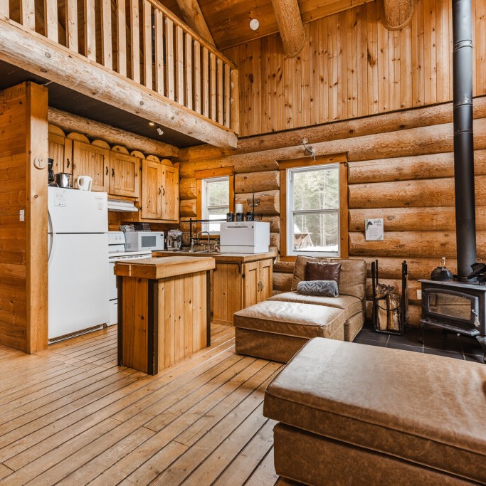 Au sein du secteur enchanteur de Grande-Vallée, porte d’entrée sud de la magnifique forêt Ouareau et ses multiples sentiers, plages et refuges, traversée par la dynamique rivière du même nom, le chalet Ô Bois Vivant est un chalet rustique en bois rond de près de 2 pieds de diamètre, au toit cathédral et garni d’une belle fenestration pour admirer la faune et la flore abondantes.