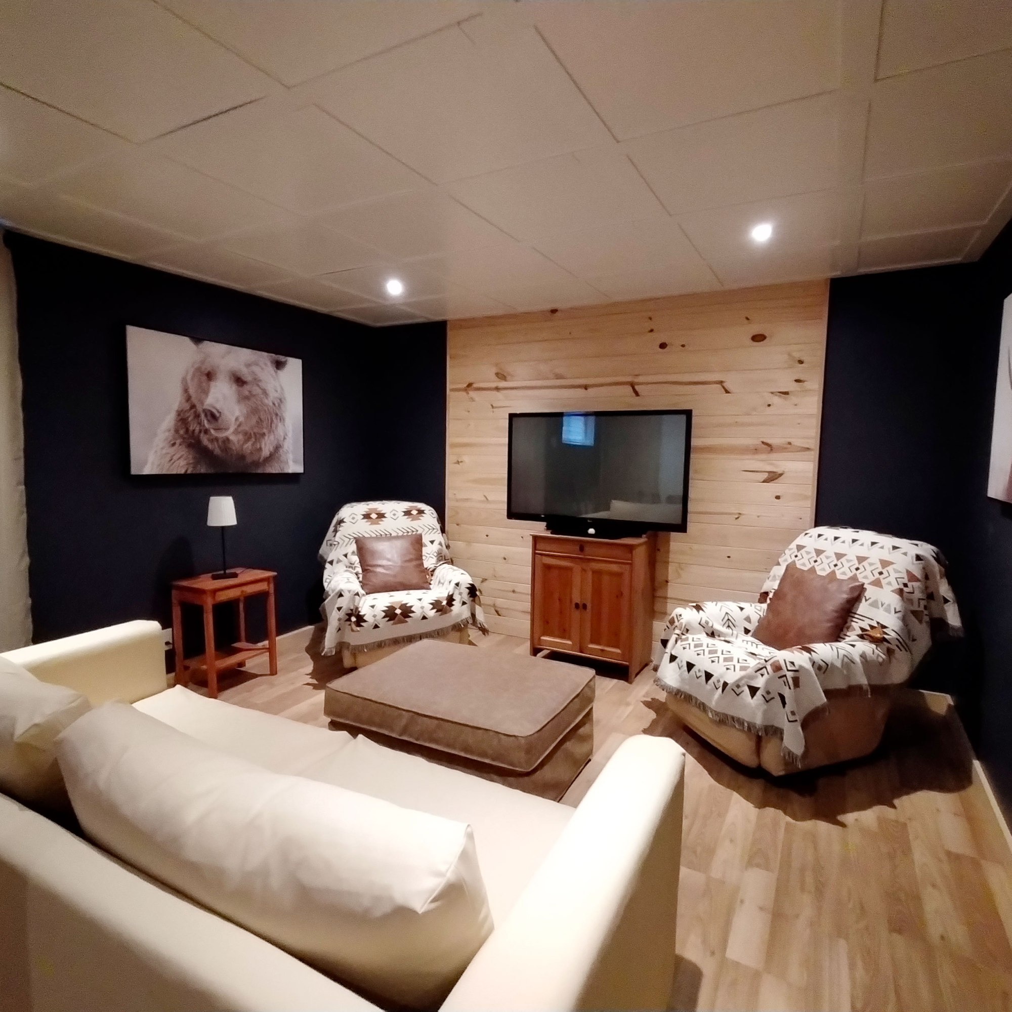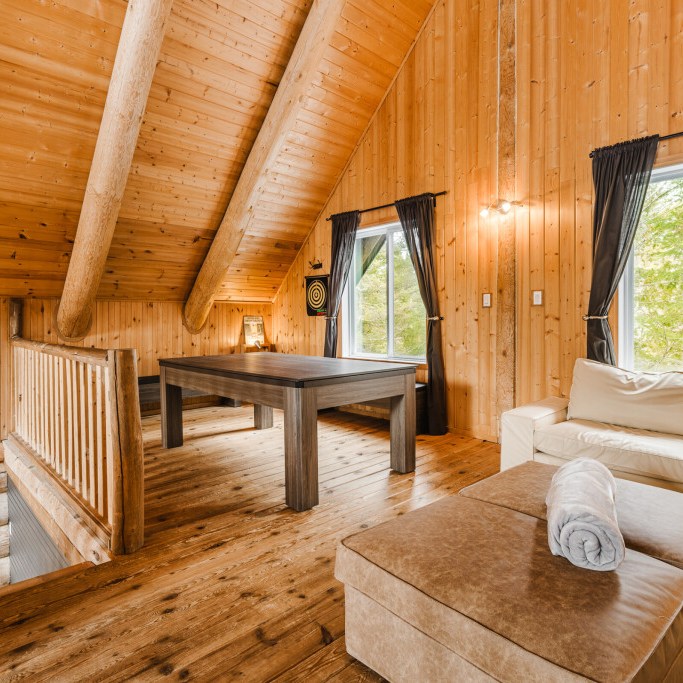 Ce chalet confortable est aménagé avec goût, et propose des petits plus très appréciables, comme le spa pour se relaxer après une bonne randonnée, et une table de billard ou de ping-pong pour s’amuser en intérieur. Nous avons apprécié le calme et la connexion avec la nature, ainsi que la possibilité de se baigner dans les lacs et rivières à proximité.
