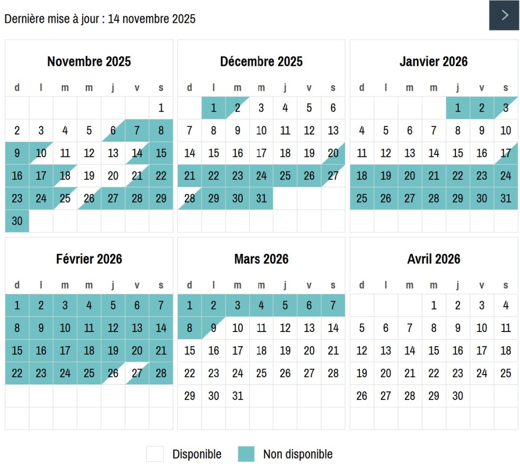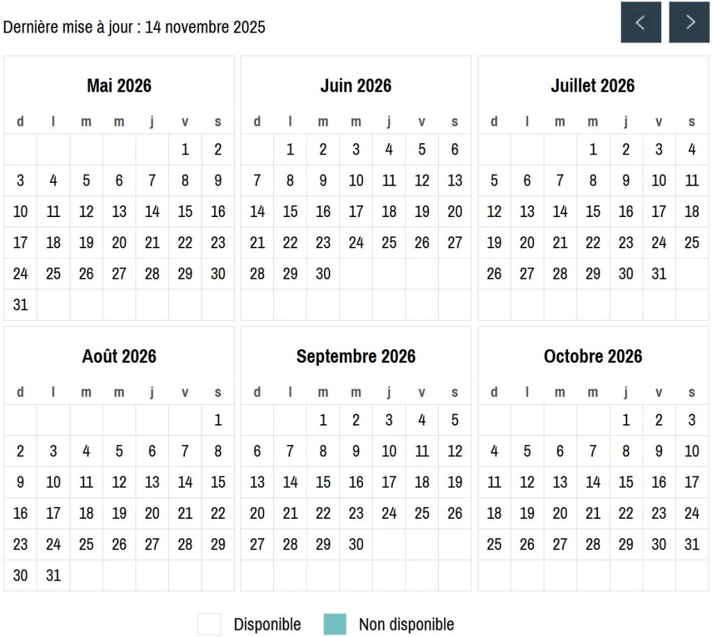 Avant d’envoyer votre demande de réservation, merci de consulter notre calendrier.